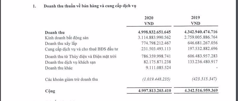 Trong đó, doanh thu từ hoạt động kinh doanh bất động sản đạt gần 3.115 tỷ đồng, tăng 356 tỷ đồng so với con số 2.759 cùng kỳ năm 2019. Một số lĩnh vực như thủy điện và điện mặt trời của Hà Đô đạt 786 tỷ đồng, doanh thu xây lắp đạt gần 775 tỷ đồng.