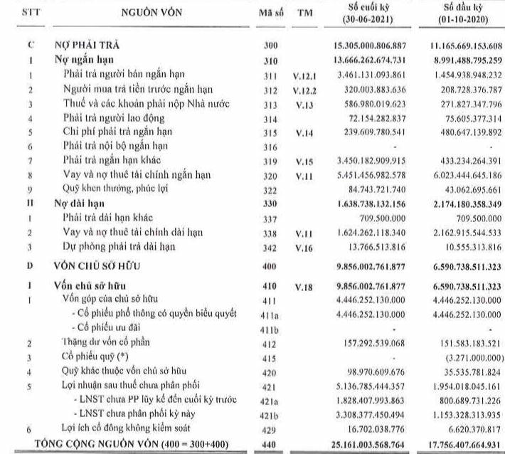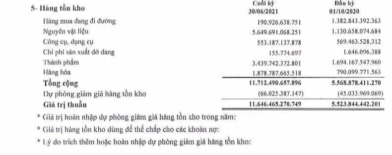 Tại ngày 30/6/2021, tổng tài sản tại HSG tăng 42% so với đầu năm (1/10/2020). Tổng tài sản tăng chủ yếu do giá trị hàng tồn kho tăng mạnh 111% so với đầu năm, lên mức hơn 11.712 tỷ đồng, chiếm 46% tổng tài sản. Trong đó, tăng chủ yếu là nguyên vật liệu lên mức hơn 5.649 tỷ đồng, tương đương tăng gấp 5 lần so với đầu năm; thành phẩm cũng tăng 103%, lên mức gần 3.430 tỷ đồng.