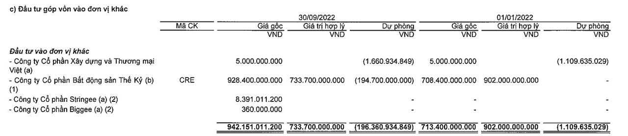 Dự phòng khoản lỗ gần 200 tỷ đồng từ đầu tư cổ phiếu CRE
