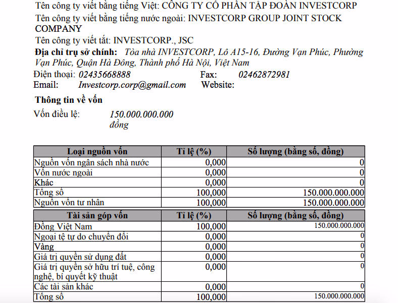 Theo tìm hiểu, Tập đoàn Investcorp được thành lập vào ngày 1/11/2010, tiền thân là Công ty cổ phần Đầu tư và phát triển xây dựng Công nghiệp. Địa chỉ trụ sở chính lúc này đặt tại số nhà 73A, ngách 139/27 đường Nguyễn Ngọc Vũ, phường Trung Hoà, quận Cầu Giấy, Hà Nội.