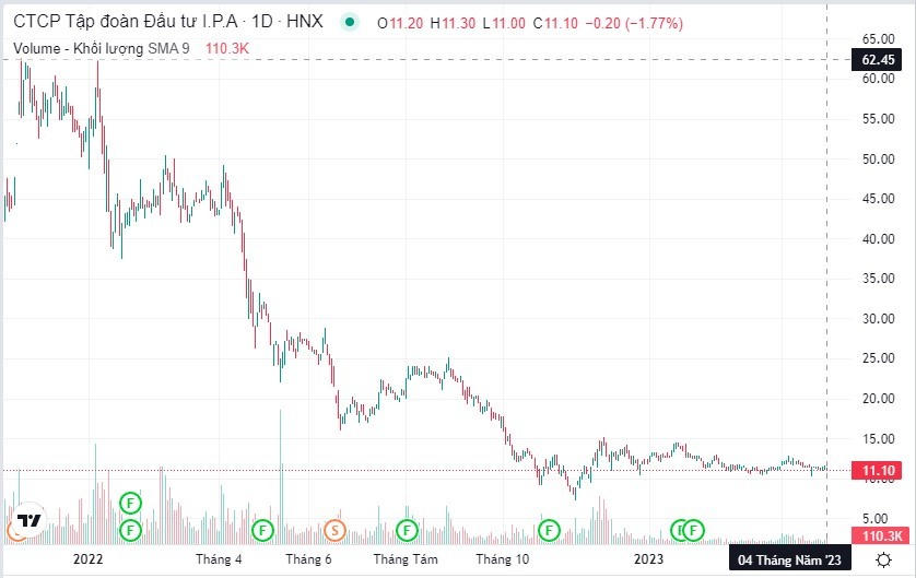 Có thể thấy, nếu so với đỉnh của cổ phiếu vào thời điểm tháng 1/2022 thì thị giá cổ phiếu IPA đã giảm đến 83%.