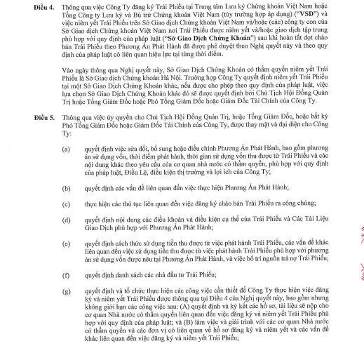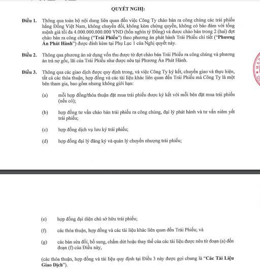 Theo đó, HĐQT Masan thông qua toàn bộ nội dung liên quan đến việc công ty chào bán ra công chúng các trái phiếu bằng VNĐ, không chuyển đổi, không kèm chứng quyền, không có bảo đảm với tổng mệnh giá tối đa 4.000 tỷ đồng.