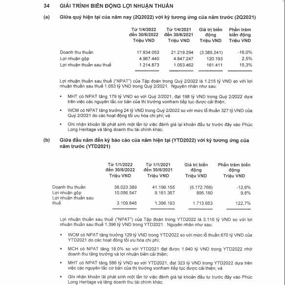 Nếu loại trừ doanh thu từ mảng thức ăn chăn nuôi của năm 2021 để so sánh tương đương, doanh thu thuần của MSN trong quý 2/2022 tăng 9,1% so với cùng kỳ do tăng trưởng từ Masan High-Tech Materials (MHT) và MCH.