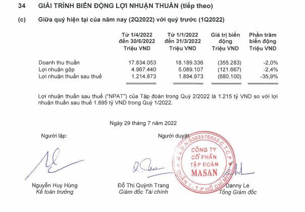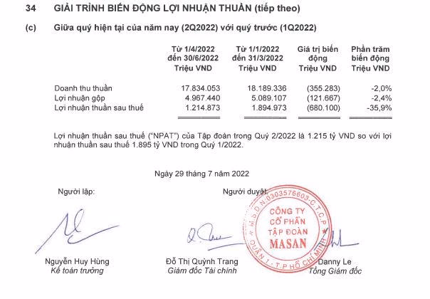 Tính chung 6 tháng đầu năm 2022, doanh thu thuần tại Tập đoàn Masan đạt 36.023 tỷ đồng, giảm 12,5% so với mức 41.196 tỷ đồng của cùng kỳ năm 2021.
