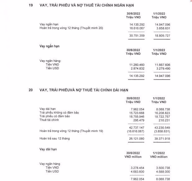 Theo đó, tính đến cuối quý 2/2022, nợ vay bao gồm cả trái phiếu hơn 56.872 tỷ đồng, chiếm 45% tổng tài sản.