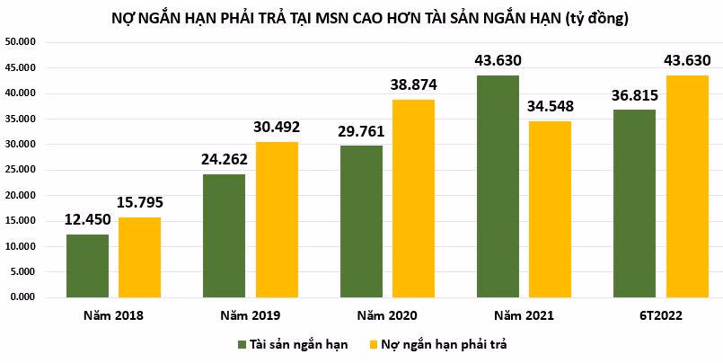 Vì tăng cường hoạt động vay nợ (chủ yếu là nợ vay ngắn hạn), do đó, tính đến cuối quý 2/2022, Tập đoàn Masan ghi nhận nợ ngắn hạn phải trả cao hơn tài sản ngắn hạn đến 15.529 tỷ đồng, tương đương cao gấp 1,4 lần tài sản ngắn hạn.