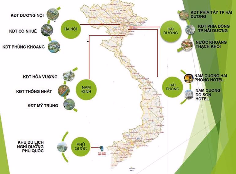Thời gian qua, Tập đoàn Nam Cường đã đẩy mạnh các hoạt động đầu tư tại nhiều tỉnh, thành phố như: Hải Dương, Hải Phòng, Nam Định, Hà Nội, Kiên Giang và một số địa phương khác.