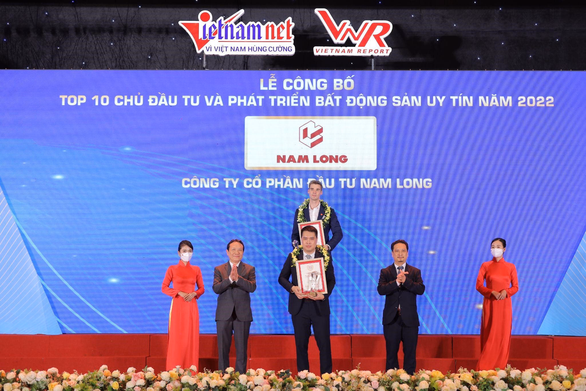 Năm 2022 là năm thứ 7 liên tiếp Nam Long được vinh danh trong Top 10 Công ty uy tín ngành bất động sản Việt Nam do Top 10 Công ty uy tín ngành bất động sản tổ chức. Đây là minh chứng tốt nhất cho sự phát triển bền vững của Nam Long và khích lệ công ty tiếp tục nỗ lực bứt phá giới hạn, vượt lên dẫn đầu về phát triển bất động sản nhà ở trong những năm tiếp theo.