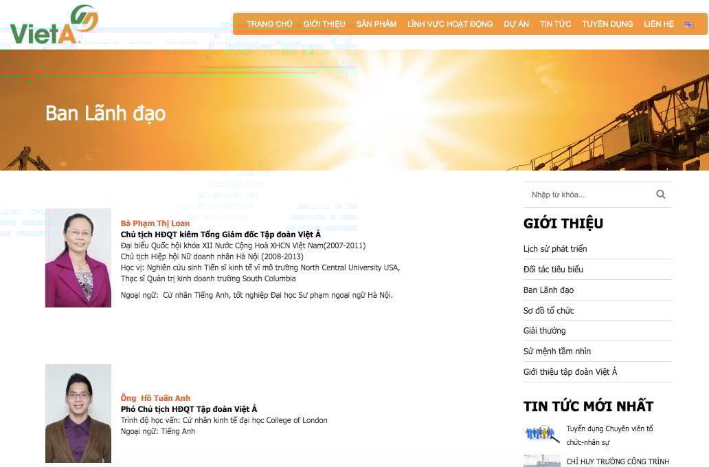 Theo giới thiệu, Công ty cổ phần Tập đoàn Đầu tư Thương mại Công nghiệp Việt Á thành lập ngày 26/4/2005, có trụ sở chính tòa nhà Việt Á, số 9, phố Duy Tân, phường Dịch Vọng Hậu, quận Cầu Giấy, TP Hà Nội. Tập đoàn do bà Phạm Thị Loan là đại diện pháp luật, giữ chức vụ Chủ tịch HĐQT kiêm Tổng giám đốc công ty.