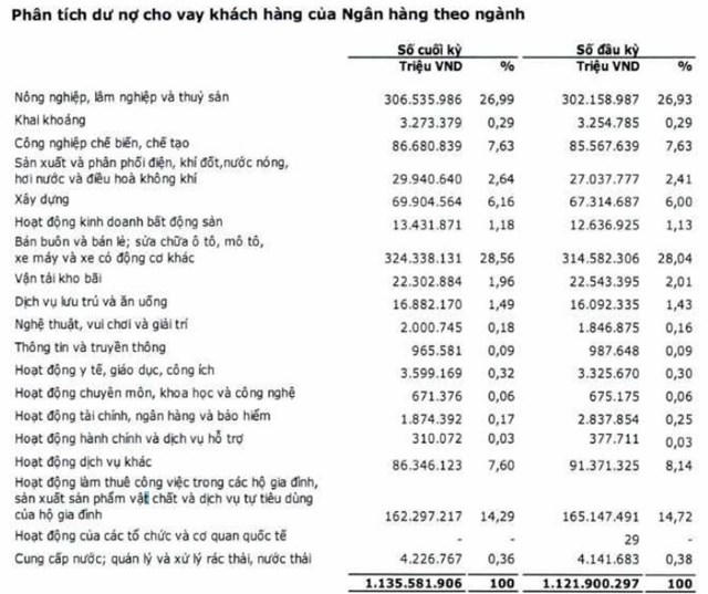 Kết thúc 6 tháng đầu năm, Agribank là nhà băng cho ngành bán buôn, bán lẻ vay nhiều nhất với dư nợ cho vay hơn 324.338 tỷ đồng, tăng 3% so với đầu năm, tỷ trọng tăng từ 28% lên mức 28,5%.