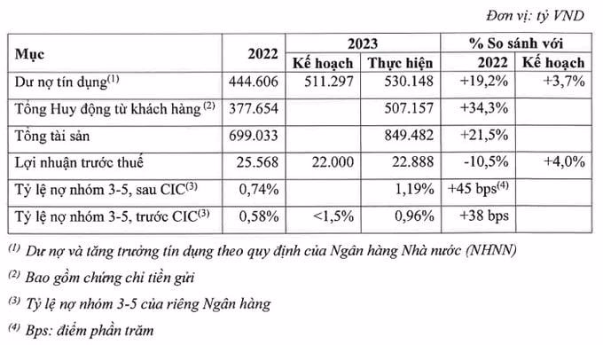 Trong năm 2023, Techcombank ghi nhận lợi nhuận trước thuế ở mức 22.900 tỷ đồng, tương đương khoảng 104% kế hoạch trước đó. Tổng tài sản đạt 849.500 tỷ đồng, tăng 21,5% so với hồi đầu năm 2023. Trong đó, huy động tiền gửi từ khách hàng tăng 26,9%, đạt 454.700 tỷ đồng.
