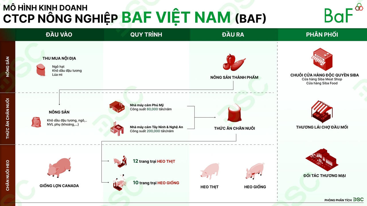 Khác với Dabaco vốn là cái tên kỳ cựu trong ngành chăn nuôi heo, BAF nhập cuộc khá muộn. Năm 2018, doanh thu mảng chăn nuôi của BAF chưa tới 140 tỷ đồng, trong khi cùng thời kỳ, ước tính doanh thu mảng này của Dabaco đã lên tới khoảng 3.800 tỷ đồng.