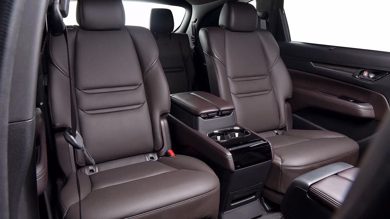 Với phiên bản Premium AWD 6 chỗ, hàng ghế thứ 2 của Mazda CX-8 2022 sẽ được bố trí ghế ngồi tách biệt có thêm bệ tỳ tay trung tâm riêng biệt cỡ lớn sang trọng, tích hợp các phím điều khiển sưởi ghế, cổng sạc USB, hộc chứa đồ rộng rãi và ngăn để ly thuận tiện. Điều này hơn hẳn so với đối thủ KIA Sorento chỉ có ghế ngồi tách rời.