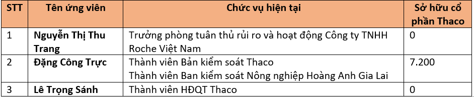 Danh sách ứng viên HĐQT