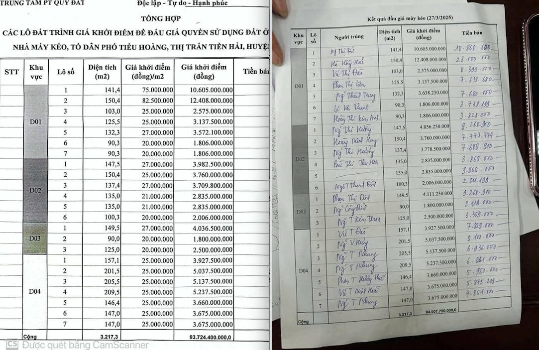 Cuộc đấu giá được tổ chức thành công vào sáng ngày 27/3 tại hội trường UBND thị trấn Tiền Hải, huyện Tiền Hải, tỉnh Thái Bình.