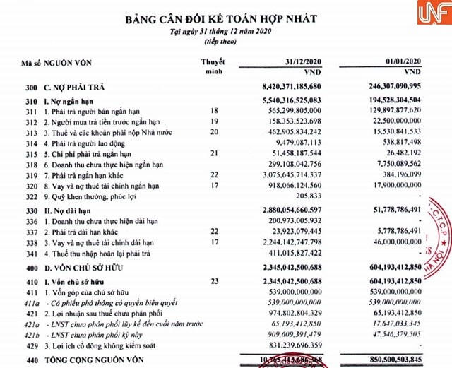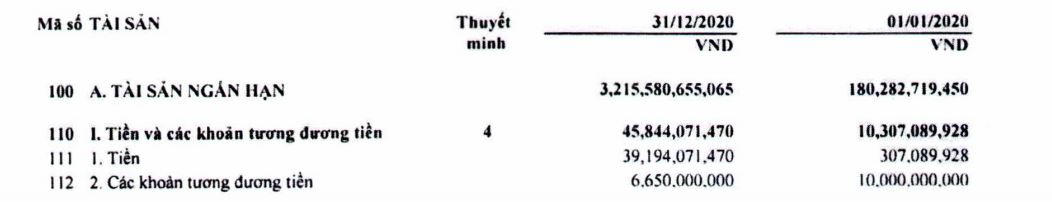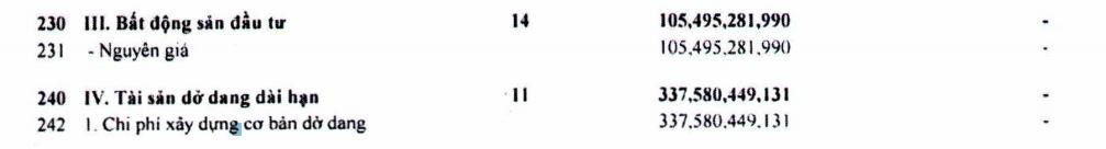 Do đó, trong khoản mục hàng tồn kho, bất động sản đầu tư và tài sản dở dang dài hạn được ghi nhận lần lượt gần 120 tỷ đồng, 105 tỷ đồng và 337 tỷ đồng, trong khi thời điểm đầu năm 2020 không có ba khoản mục này. Tuy nhiên, do doanh nghiệp chưa công bố thuyết minh báo cáo tài chính nên thông tin về khoản mục này chưa được làm rõ.