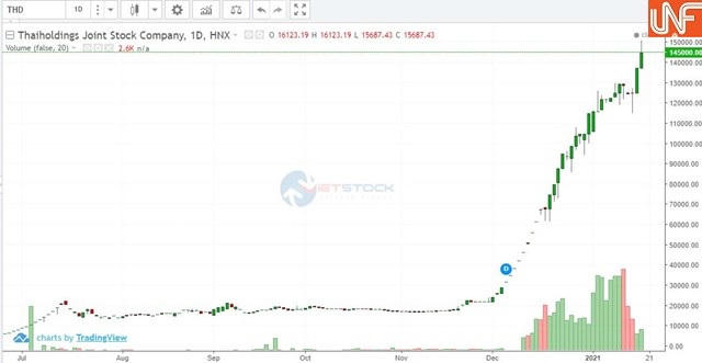 Trên sàn chứng khoán, THD là cổ phiếu tăng giá mạnh nhất trong năm 2020 khi ghi nhận tỷ lệ tăng tới hơn 26 lần.