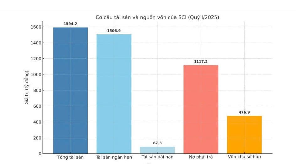 Kết quả kinh doanh quý I/2025 cho thấy SCI đang đối mặt nhiều khó khăn. Doanh thu thuần đạt 212,8 tỷ đồng, giảm 16,5% so với cùng kỳ 2024. Lợi nhuận gộp chỉ còn 2,2 tỷ đồng, giảm mạnh 65%. Đặc biệt, lợi nhuận sau thuế chuyển từ lãi hơn 3 tỷ đồng (quý I/2024) sang lỗ sâu, tỷ lệ giảm lên tới 749,69%.