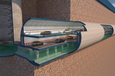 Mỗi tầng được thiết kế với 2 làn xe, và 1 làn dừng xe khẩn cấp.