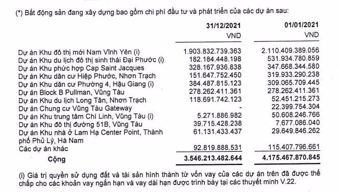 Như vậy, DIC Corp đang thực hiện dở dang hơn chục dự án với giá trị xây dựng cơ bản dở dang tính đến 31/12/2021 hơn 3.546 tỷ đồng.