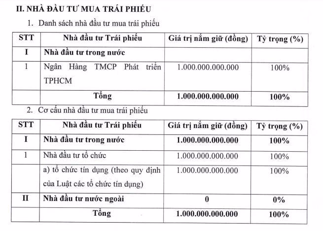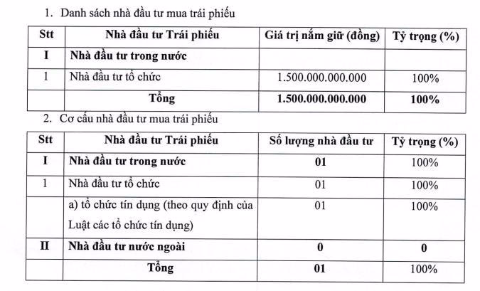 Đợt 1 phát hành thành công ngày 16/9 với giá trị 1.000 tỷ đồng; đợt 2 phát hành ngày 30/9 với giá trị 1.000 tỷ đồng, trái chủ của 2 đợt này là ngân hàng HDBank và đợt 3 phát hành thành công ngày 26/11 với 1.500 tỷ đồng, trái chủ là nhà đầu tư tổ chức.
