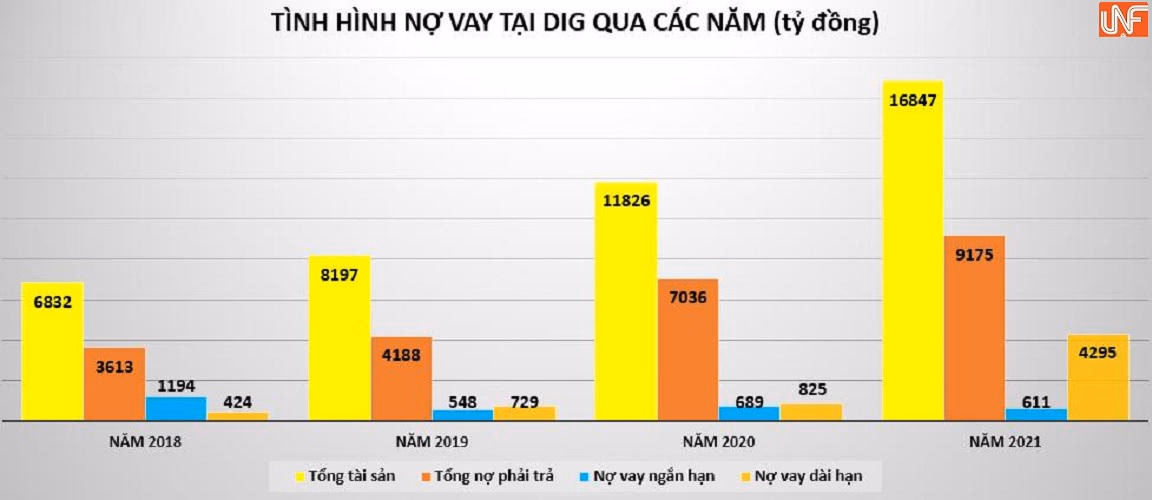 Về các khoản vay ngắn hạn, ngân hàng BIDV đang cho DIG vay hơn 106 tỷ đồng với lãi suất 6,2%-6,5%. Tài sản đảm bảo cũng liên quan tới dự án KĐT mới Nam Vĩnh Yên. Ngoài ra, BIDV cũng đang cho vay gần 30 tỷ đồng với lãi suất 6,5%-8%. Ngoài ra, ngân hàng Agribank cho vay hơn 115 tỷ đồng với lãi suất dao động từ 6,2% đến 9,5%.