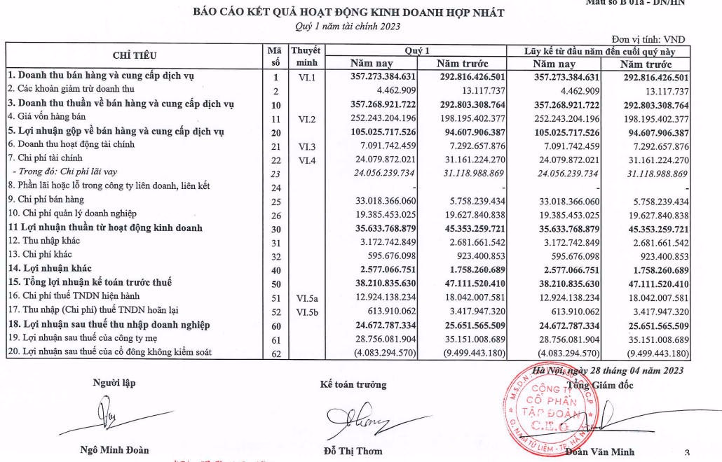 | Báo cáo tài chính quý I/2023 của CEO Group. |