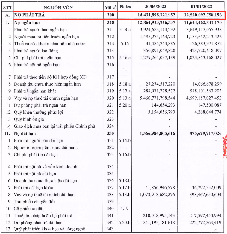 Chưa kể, tình trạng nợ xấu của công ty cũng ở mức báo động, giá trị nợ phải trả của công ty đã tăng từ 12.520 tỷ đồng thời điểm đầu năm lên mức 14.432 tỷ đồng vào cuối tháng 6/2022.