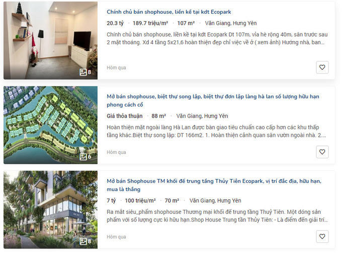 Anh Nguyễn Hữu Thức - môi giới bất động sản tại Hưng Yên - cho biết, đất nền khu công nghiệp Phố Nối (Mỹ Hào) thời điểm cuối năm 2020 là 17 - 21 triệu đồng/m2 thì nay đã tăng lên 25 - 33 triệu đồng/m2. Đáng chú ý, tại một số khu đô thị, giá nhà phố thương mại (shophouse) trong thời gian qua tăng chóng mặt.