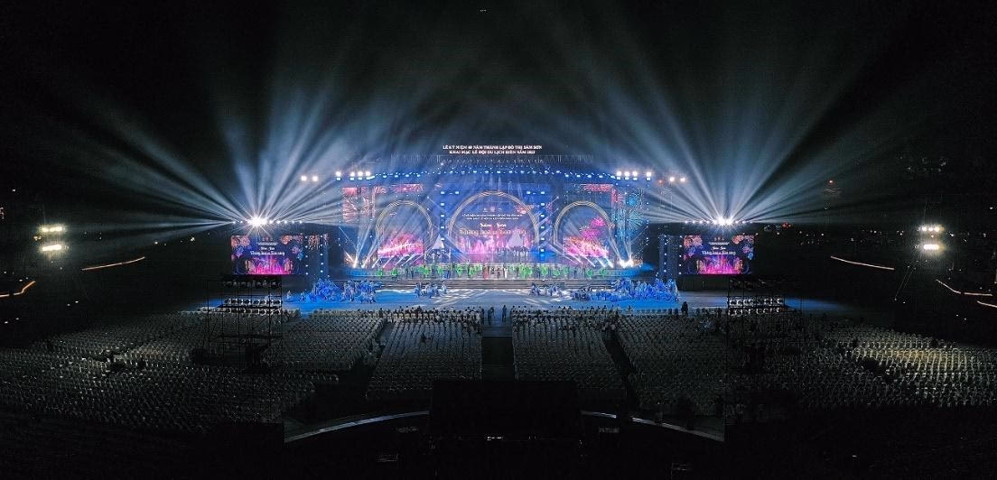 Đây là năm thứ 3 liên tiếp, Tập đoàn Sun Group đồng hành cùng địa phương tổ chức đêm nghệ thuật hoành tráng cùng màn bắn pháo hoa rực rỡ mở màn cho mùa du lịch biển.