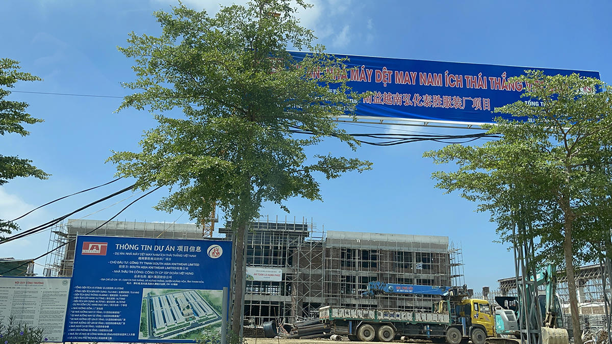 Dự án Nhà máy Dệt may Nam Ích Thái Thắng được xây dựng tại Cụm công nghiệp Thái Thắng, thuộc địa phận xã Hoằng Thái và xã Hoằng Thắng của huyện Hoằng Hóa. Dự án có tổng mức đầu tư trên 1.090 tỷ đồng do Công ty TNHH South Asia Knitwear Limited thuộc Tập đoàn Nam Ích (Hồng Kông) làm chủ đầu tư; Công ty cổ phần Tập đoàn Việt Hưng là đơn vị tổng thầu thi công.