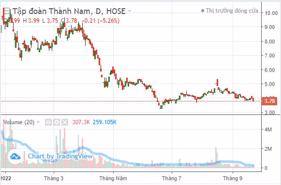 Trên thị trường chứng khoán, cổ phiếu TNI của Thành Nam ghi nhận sự giảm mạnh so với thời điểm đầu năm. Thậm trí, thời điểm gần cuối năm 2021, cổ phiếu TNI bất ngờ tăng “phi mã” đi từ vùng giá 4.000 đồng/cổ phiếu lên 14.000 đồng/cổ phiếu trong chưa đầy một tháng.