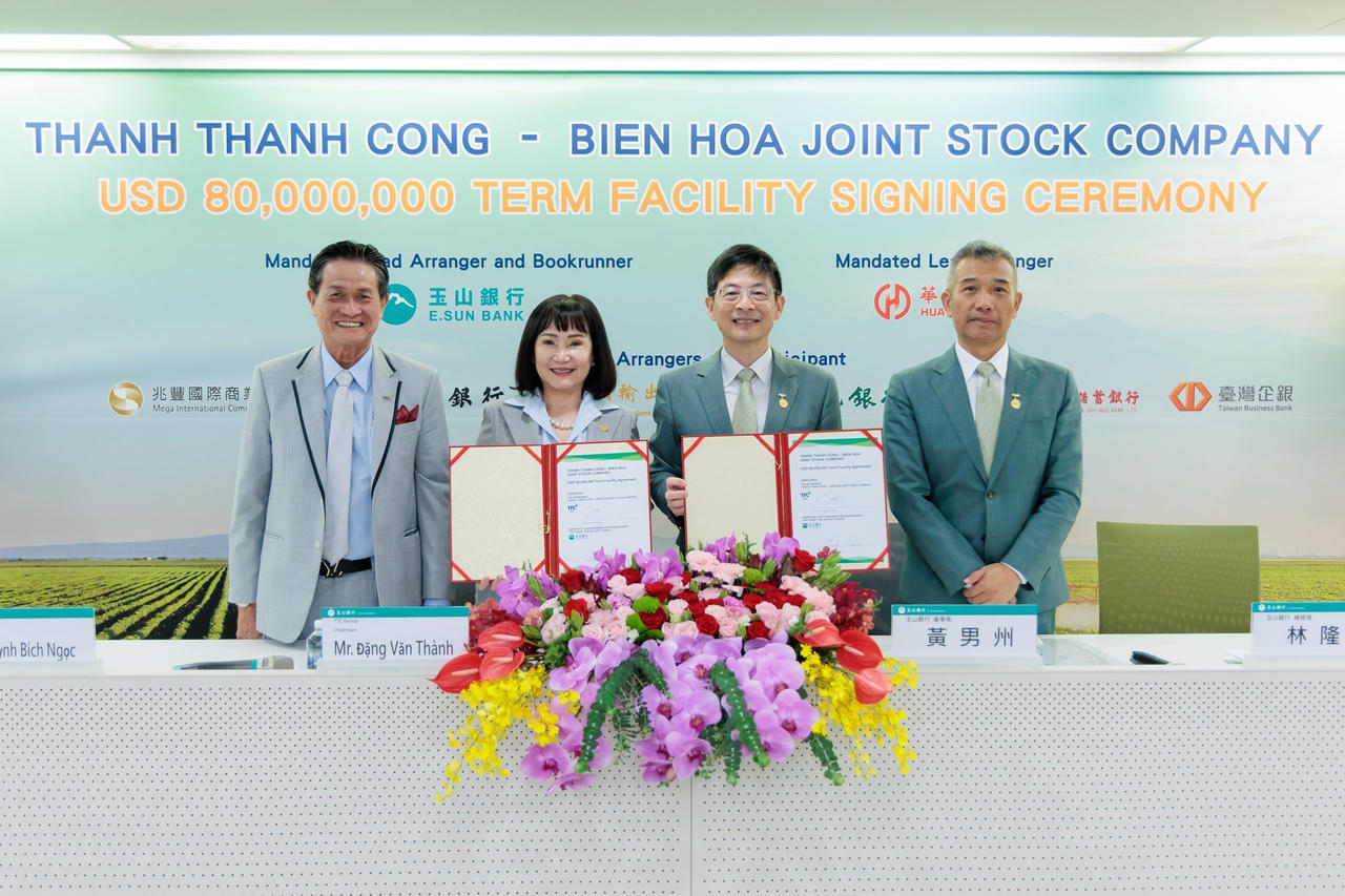 Ngày 13/5/2024, Công ty Cổ phần Thành Thành Công - Biên Hoà (TTC AgriS, HOSE: SBT) đã hoàn tất ký kết nhận khoản vay có tổng trị giá 80 triệu USD với Ngân hàng Thương mại TNHH E.SUN (E.SUN Bank, Đài Loan).