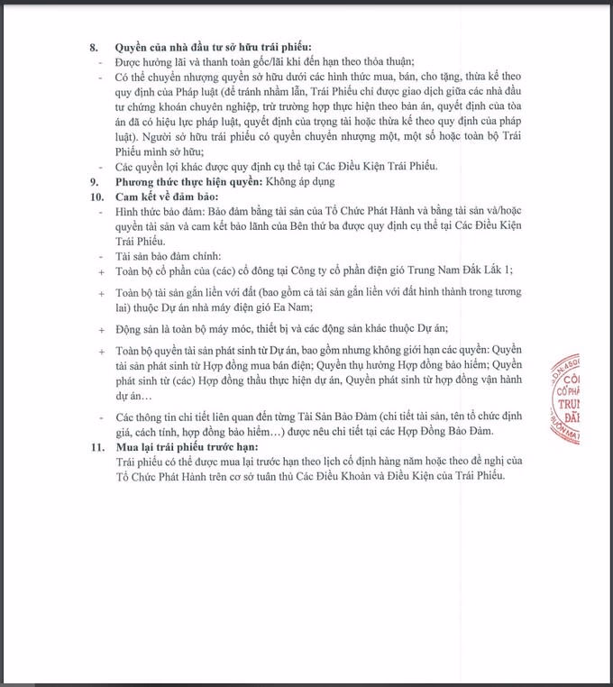 Trong 4 lô trái phiếu kể trên của Trung Nam Đắk Lắk 1, lô trái phiếu có giá trị lớn nhất (2.000 tỷ) được phát hành vào ngày 1/11/2021 (mã trái phiếu là TD1CB2135007). Đây là lô trái phiếu có kỳ hạn 5.016 ngày, đáo hạn vào ngày 29/7/2035.