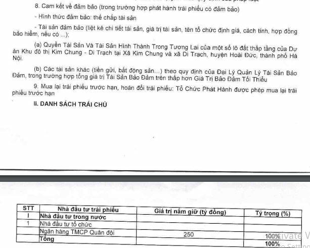 Tài sản bảo đảm cho lô trái phiếu này gồm dự án Nhà máy điện gió Hòa Thắng 1.2; 103,4 triệu cổ phần phổ thông do Hòa Thắng phát hành; và các quyền tài sản phát sinh từ một số lô đất thấp tầng thuộc dự án Khu đô thị mới Kim Chung – Di Trạch tại huyện Hoài Đức, Hà Nội.