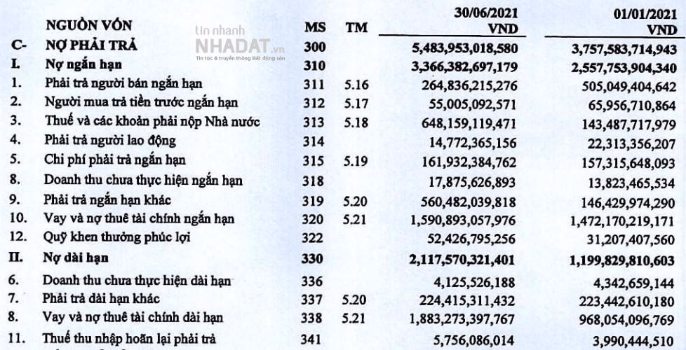 Trong đó phải trả ngắn hạn tăng 284% lên 560 tỷ đồng, chủ yếu do tăng tiền thu từ các hợp đồng đặt cọc, vay vốn liên quan đến bất động sản. Vay nợ tài chính dài hạn cũng tăng 95% lên 1.883 tỷ đồng.