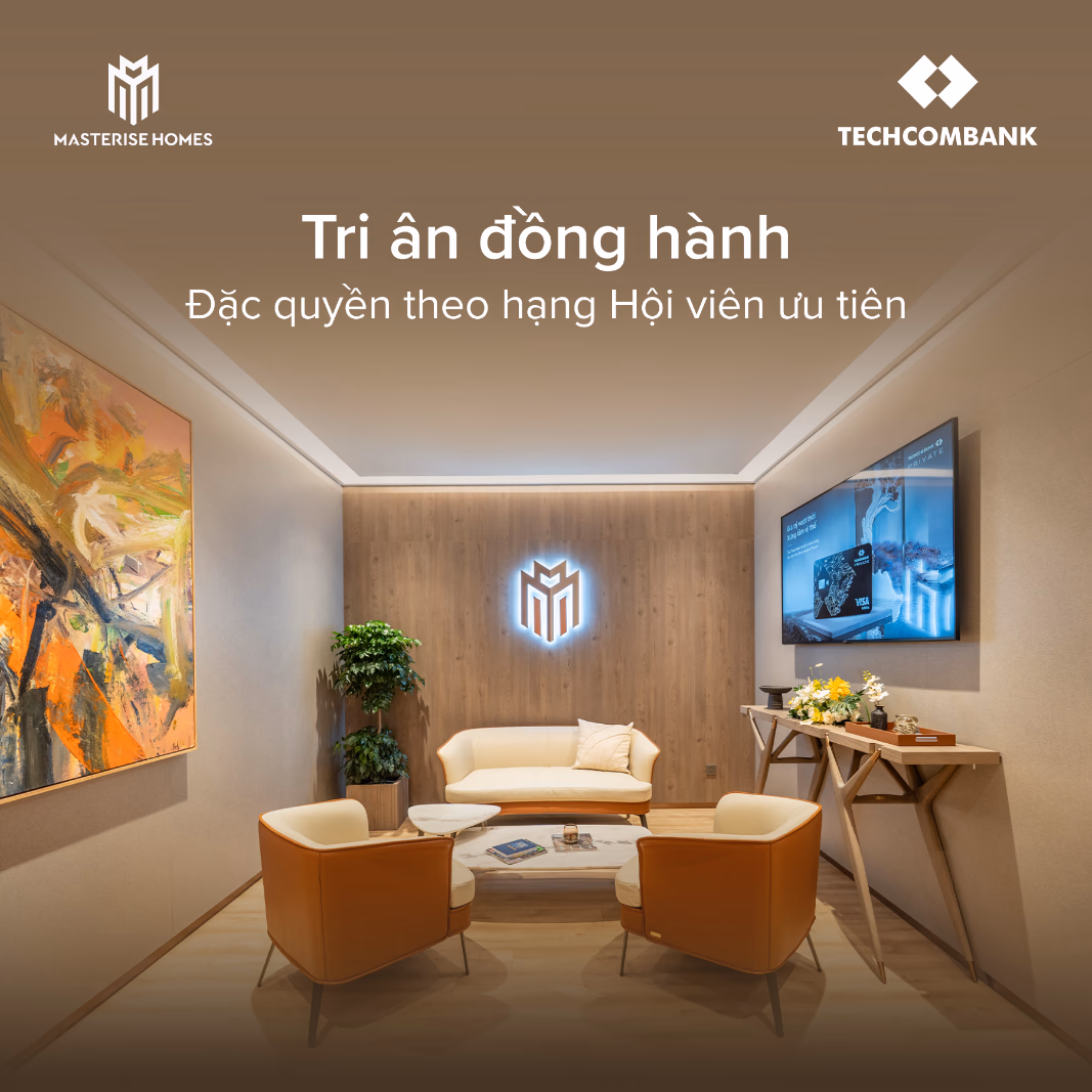 Masterise Homes kiến tạo không gian sống hàng hiệu theo tiêu chuẩn quốc tế, nơi từng chi tiết được chăm chút để nuôi dưỡng cảm xúc sống. Techcombank xây dựng nền tảng tài chính thông minh và hiệu quả, giúp khách hàng luôn chủ động và an tâm trong các kế hoạch dài hạn.