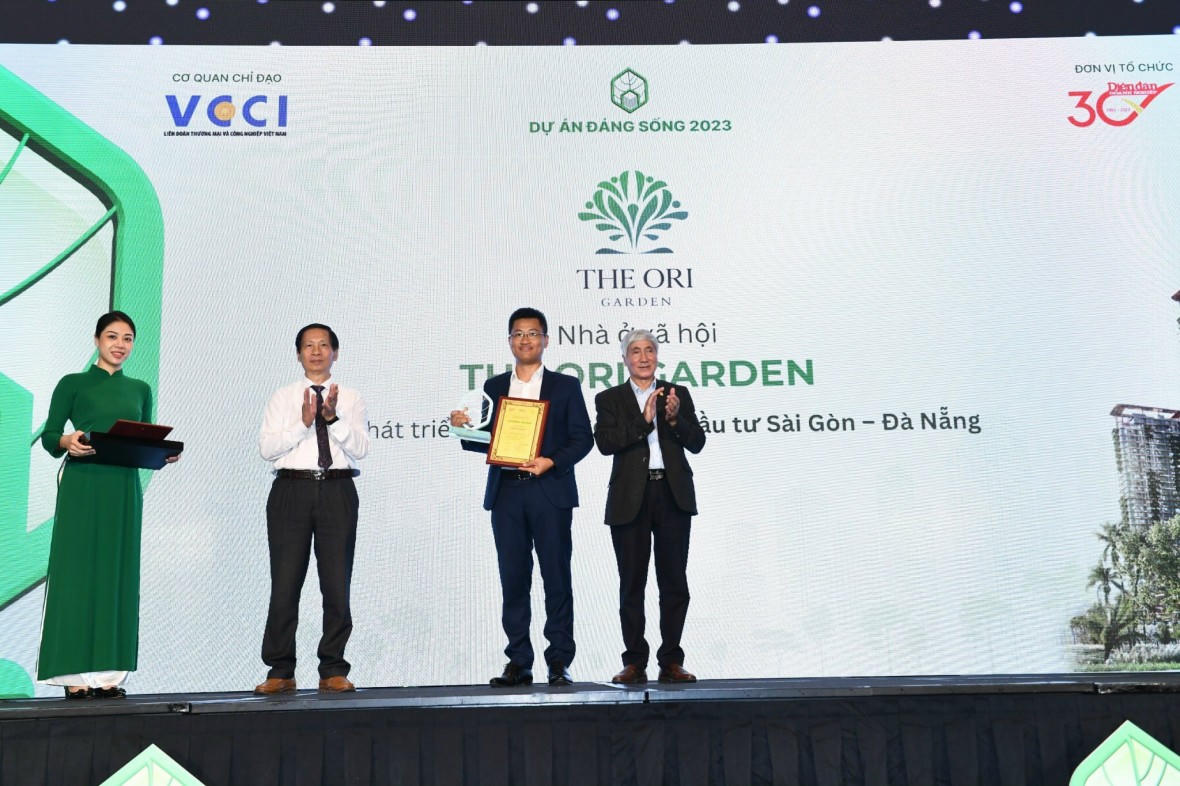 Công ty Cổ phần đầu tư Sài Gòn – Đà Nẵng nhận giải thưởng “Dự án đáng sống năm 2023” cho dự án The Ori Garden trong khuôn khổ Diễn đàn phát triển bền vững thị trường Bất động sản.