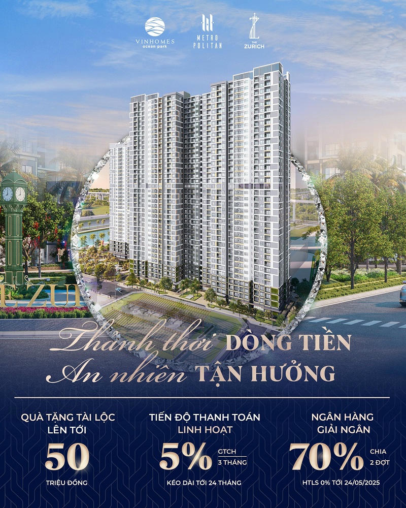 Sức hút của căn hộ The Zurich tại Vinhomes Ocean Park ngày càng tăng khi chính sách bán hàng với nhiều ưu đãi vượt trội vừa chính thức được chủ đầu tư công bố, giúp khách hàng dễ dàng sở hữu nơi an cư mang phong cách Thụy Sĩ trong lòng Hà Nội.