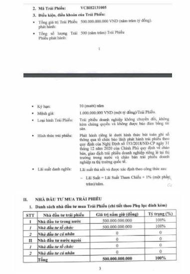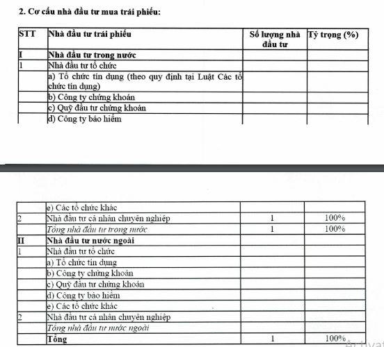 Báo cáo kết quả phát hành cho biết lô trái phiếu 7 năm đã được mua trọn bởi một nhà đầu tư cá nhân. Tuy nhiên, báo cáo không nêu rõ đích danh.