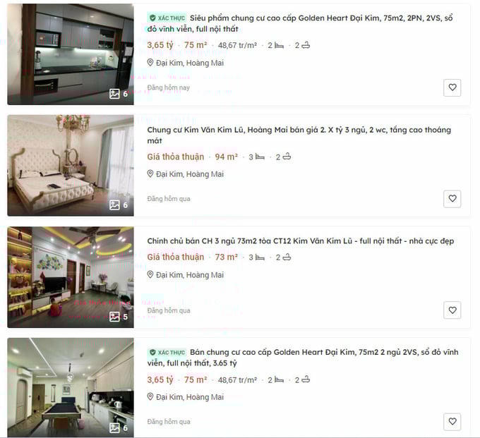 Khảo sát trên một số trang thông tin bất động sản hiện nay, tại quận Thanh Xuân, Hoàng Mai, Hà Đông, giá bán căn hộ tại những chung cư cũ từ 35-60 triệu đồng/m2.