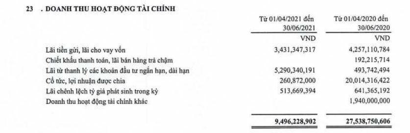 Tuy nhiên, quý 2/2021 doanh thu hoạt động tài chính của TLH giảm 66% xuống còn 9,5 tỷ đồng do trong kỳ cổ tức, lợi nhuận được chia giảm mạnh. Đồng thời lãi tiền gửi và lãi cho vay vốn giảm còn hơn 3 tỷ đồng.