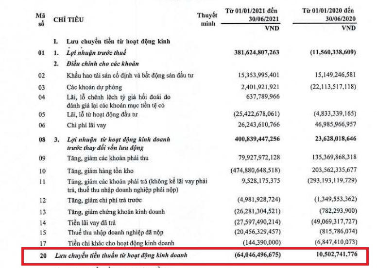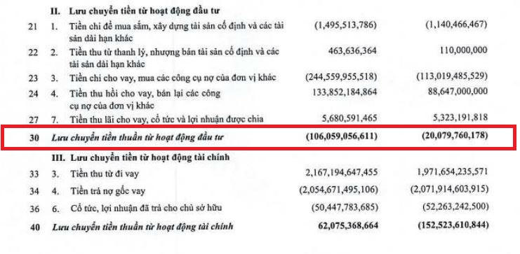 Ngoài ra, dòng tiền từ hoạt động đầu tư cũng âm hơn 106 tỷ đồng trong khi cùng kỳ 2020 chỉ âm gần 21 tỷ đồng. Do đó, dòng tiền thuần trong kỳ tại TLH âm hơn 108 tỷ đồng.