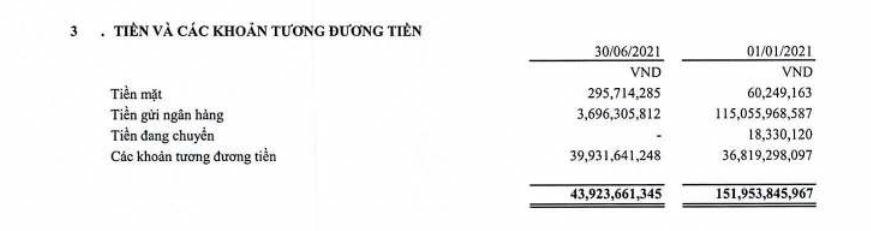 Hơn nữa, kho tiền mặt tại TLH (tiền và các khoản tương đương tiền) giảm mạnh 71% so với đầu năm, xuống còn gần 44 tỷ đồng.
