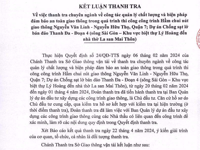 Mới đây, Thanh tra Sở Giao thông Vận tải TP. HCM vừa ban hành Kết luận thanh tra liên quan đến Dự án chống sạt lở bán đảo Thanh Đa – đoạn 4 (sông Sài Gòn – khu vực biệt thự Lý Hoàng đến nhà thờ La san Mai Thôn) do Ban Quản lý dự án đầu tư xây dựng các công trình giao thông (Ban Giao thông) làm chủ đầu tư.
