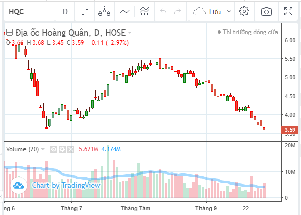 Tính đến hiện tại, kế phiên giao dịch cuối tuần ngày 30/9/2022, cổ phiếu HQC thậm trí còn giảm xuống mức 3.590 đồng/ cổ phiếu (tức chỉ bằng 1/3 mức giá được HQC chào bán trước đó).