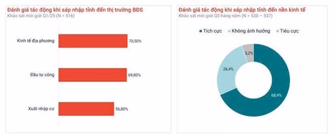 Theo thông tin cập nhật từ các thành viên Tổ Công tác nghiên cứu thị trường, Hội Môi giới Bất động sản Việt Nam (VARS), chỉ sau vài tuần kể từ khi có thông tin đề xuất sáp nhập tỉnh, giá đất tại một số địa phương đã bị đẩy lên cao, có nơi lên tới 20%. Thực tế ghi nhận, lượng giao dịch chỉ tăng trưởng tại các tỉnh, thành được dự đoán là trung tâm sáp nhập, có mặt bằng giá chưa quá cao.