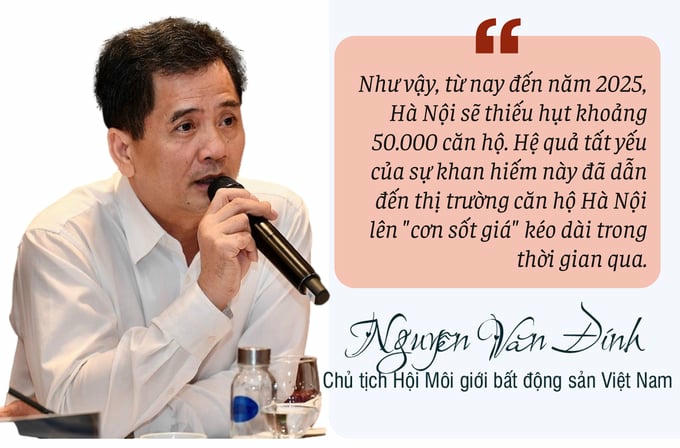 Ông Nguyễn Anh Tú, Giám đốc phát triển dự án, Công ty cổ phần đầu tư Bất động sản Lộc Sơn Hà cho rằng trong ngắn hạn, giá căn hộ sẽ khó giảm, đặc biệt nguồn cung căn hộ cao cấp có thể đủ cho thị trường nhưng ở phân khúc tầm trung và bình dân gần như thiếu hụt, dẫn đến nhiều hệ luỵ như sốt chung cư và sau đó là sốt đất nền trong những quý đầu năm 2024.