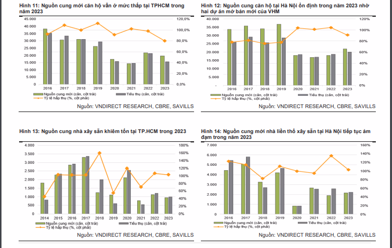 VNDirect dự báo, nguồn cung mới căn hộ tại TP HCM trong năm 2023 vẫn ở mức thấp với khoảng 19.000-20.000 căn (giảm 10% so với cùng kỳ) và khoảng 15.000 căn hộ tiêu thụ (giảm 20% so với cùng kỳ). Nguồn cung mới nhà ở xây sẵn tiếp tục ảm đạm ở cả TP HCM và Hà Nội, ở mức 1.000-2.000 căn mở bán vào năm 2023.