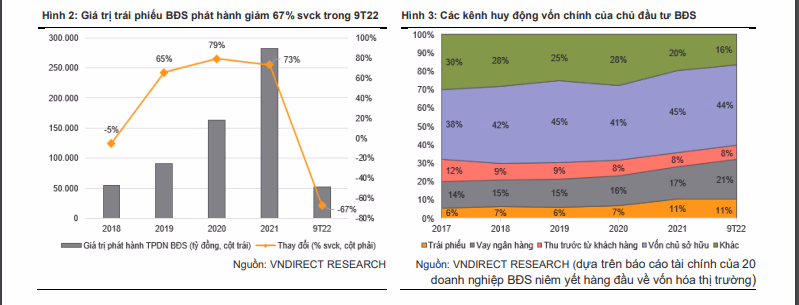 Hiện tại, vay ngân hàng và phát hành trái phiếu là kênh huy động vốn quan trọng cho các doanh nghiệp bất động sản. Trong khi đó, doanh số bán hàng trong quý 3/22 giảm đến 40% so với quý trước ở cả thị trường TP.HCM và Hà Nội. Trong bối cảnh thắt chặt các khoản vay ngân hàng, thị trường trái phiếu “chao đảo” và bán hàng trầm lắng, dòng tiền của nhiều nhà phát triển BĐS đang dần cạn kiệt